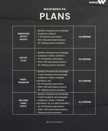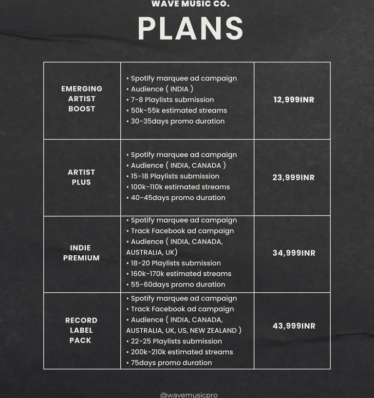 Flexible promotion plans designed for emerging artists, independent musicians and record labels looking to expand their global audience.